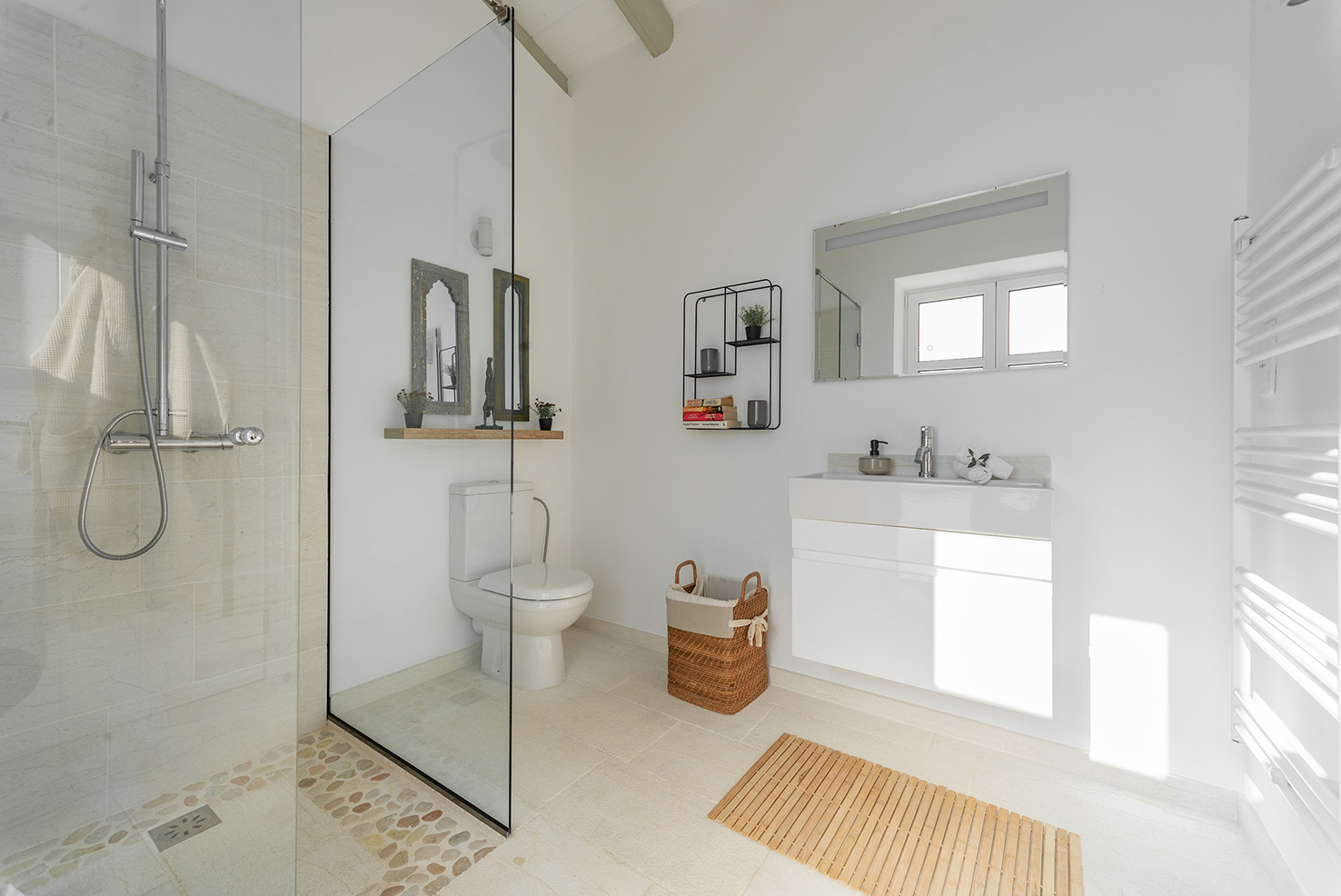 Ground Floor: Open plan living space, fully equipped kitchen, master bedroom with superking bed, en suite shower room and terrace; superking/twin bedroom with en suite shower room; terraces